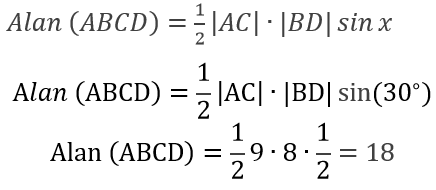 Şekilde verilen ABCD yamuğu için [AC]=9, [CD]=8 birim olduğuna göre yamuğun alanı nedir?