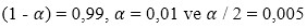 elde edilir. Ana kütle ortalamasının %98 güven seviyesi için alt ve üst güven sınırlarını şöyle hesaplayabiliriz: