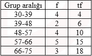 Mod grubundan önceki grubun frekansı=4