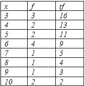 3, 3, 3, 4, 4, 5, 5, 6, 6, 6, 6, 7, 8, 9, 10, 10 ise
