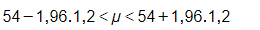 Bir okuldaki öğrenciler arasından rassal olarak seçilen 100 öğrencinin vücut ağırlıkları ortalaması 54 kg ve standart sapması 12 kg olarak elde edilmiştir. Anakütle ortalamasının %95 güven düzeyinde güven aralığı nedir?