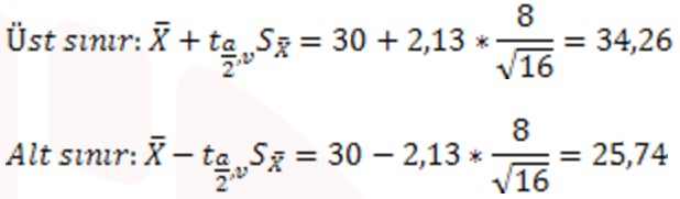 Buna göre ana kütle ortalamasının alt ve üst sınırları aşağıdaki gibidir: