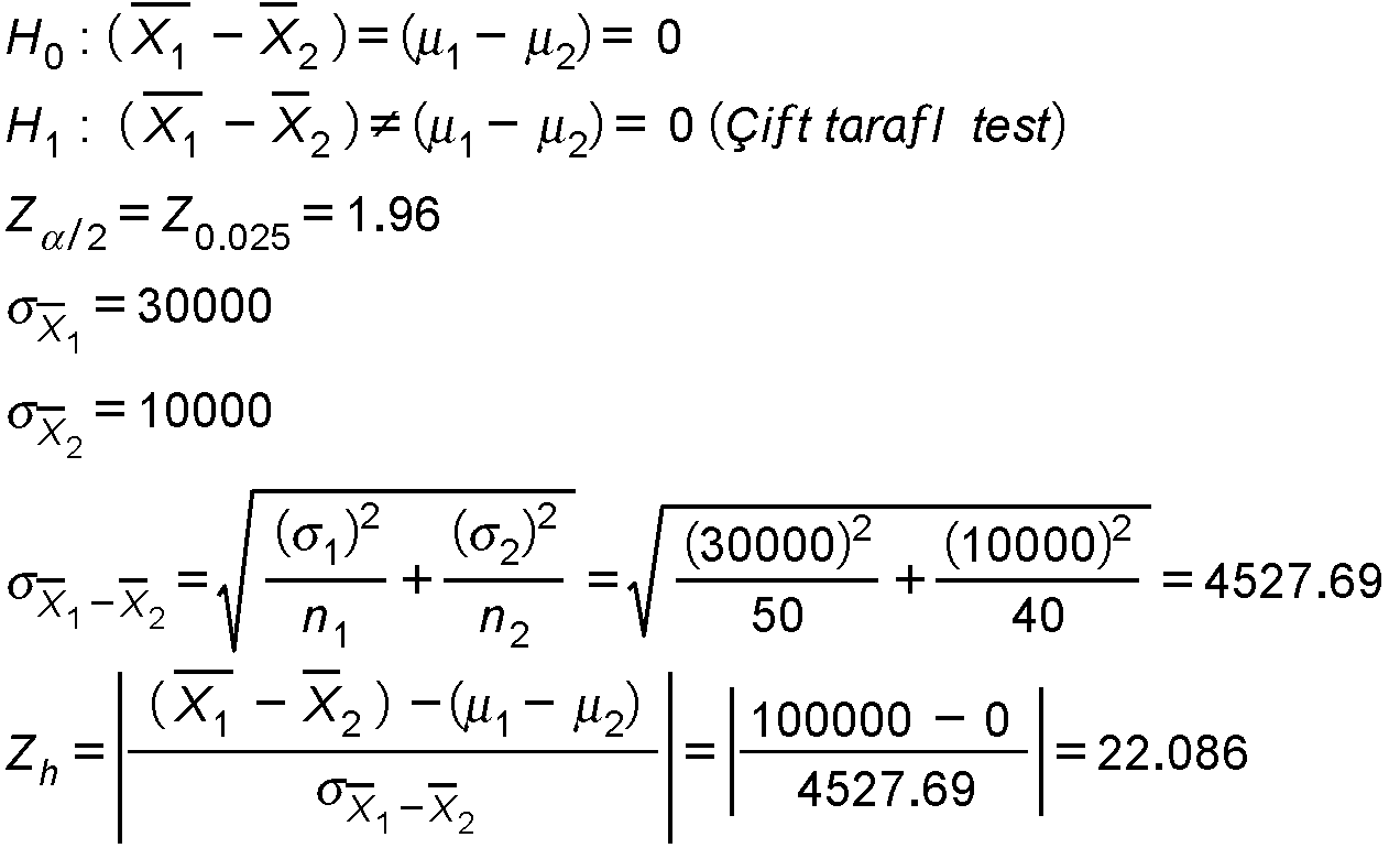 Zh > Z0.025 olduğundan şehirlerin ortalama kazanç değerleri arasında fark vardır.