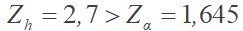 Anlamlılık düzeyine göre teorik test istatistiği; olduğundan Z çizelgesinden 0,45 olasılığına karşılık gelen