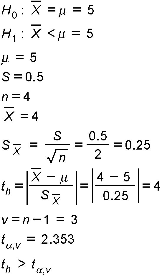 Matematik dersinden her dönem ortalama 5 öğrenci kalmaktadır. Ders saatinin arttırılması ile 4 dönem boyunca ortalama 4 öğrenci kaldığı ve standart sapmanın 0.5 olduğu belirlenmiştir. %5 anlamlılık düzeyi için dersten kalan öğrenci sayısında azalma meydana gelmiş midir ve th değeri nedir? ( t0.05,3=2.353 )