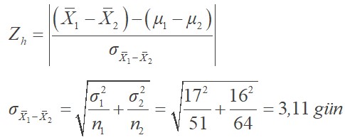 Ana kütle standart sapmaları bilinmemekle birlikte, ve