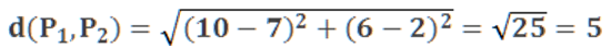 Düzlemde P1 = (10,6) ve P2 = (7,2) noktaları arasındaki Öklid uzaklığı aşağıdakilerden hangisidir?