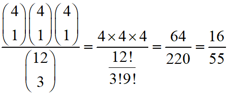 3 renge ait 4’er bilyenin bulunduğu bir torbadan geri atılmamak sureti ile rastgele seçilen üç bilyeden her birinin farklı bir renkte olması olasılığı kaçtır?