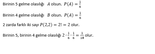 ’dır. O halde her iki olayın da aynı anda olma olasılığı