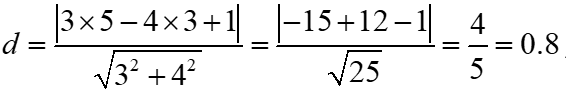 Bir nokta ile doğru arasındaki mesafe formülünde P1 noktası ve L1 doğrusu yerine konulduğunda