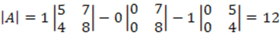 Yukarıdaki matrisin determinantını lük matrisler için determinant hesaplama kuralını kullanarak hesaplayabiliriz. Bu formülü uyguladığımızda
