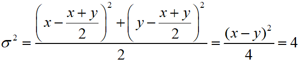 Belirtilen sayılar x ve y olsun. Buna göre varyans formülünden ve (x-y)2 =16