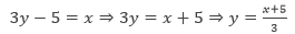 y=f(x)=3x-5 fonksiyonunun ters fonksiyonunu bulabilmek için x yerine y, y yerine x yazarsak ;