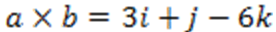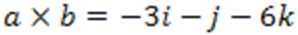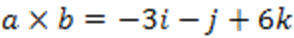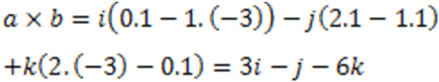 a x b = (y1.z2 – z1.y2)i – (x1.z2 – z1.x2)j + (x1.y2 – y1.x2)k