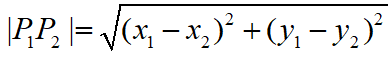P1=(x1,y1),P2=(x2,y2) noktaları arasındaki mesafe eşitliği ile hesaplanmaktadır. Buradan