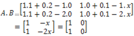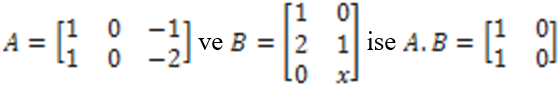 olup iki matrisin eşitliğinden, x=0 elde edilir.