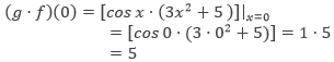 f(x)=3x2+5 ve g(x)=cosx fonksiyonları veriliyor. Buna göre, (g⋅f)(0) değeri aşağıdakilerden hangisidir?
