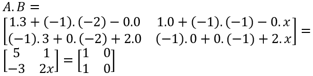 olup iki matrisin eşitliğinden, x=0 elde edilir.