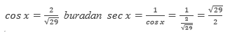 olarak bulunur. Dik üçgen yardımıyla olur.