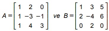 matrisleri veriliyor. C = A.B eşitliği verildiğine göre C matrisinin