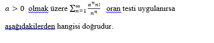 eğer r ≥ 1 ve a > 0 ise + ∞ ‘ a ; r ≥ 1 ve a < 0 ise - ∞ ‘a ıraksar.