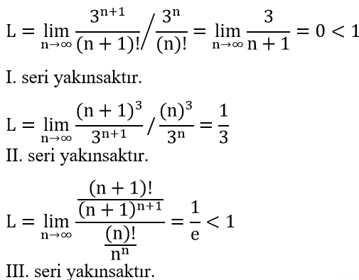 serisi verilsin. Eğer p>1 ise seri yakınsak, aksi durumda seri ıraksaktır. Bu sebeple I no.lu dizi ıraksak, II ve III yakınsaktır. Doğru cevap D şıkkıdır.