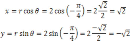 Kutupsal koordinatlarda verilen bir ikilisinin Kartezyen koordinatlardaki karşılığı