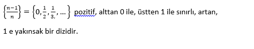 Sınırlı, pozitif, artan 1 e yakınsak bir dizidir. |