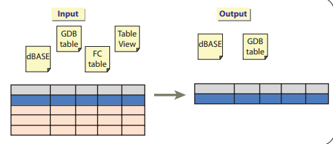 Bir girdi tablosundan, Sorgulama Dili (SQL) ifadesini sağlayan objelerin bir başka çıktı tablosuna depolanmasına Select Table Analiz Fonksiyonu denir. Aşağıdaki şekil select table’ye örnektir.