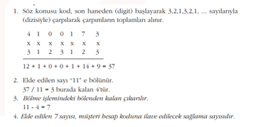 Hesap kodu 4100173 olan bir müşteri kodunun sağlama sayısı kaçtır?