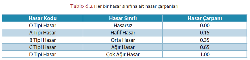 Tablo 6.2'de görüldüğü gibi orta hasar çarpanı 0.15'tir. Doğru cevap B'dir