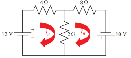 1. göze (IA) ait denklem: –12 + 4 . IA + 2 . (IA – IB) = 0