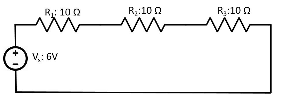 Reş = R1 + 1 + 2 = 3 + 1 + 2 = 6 Ω olur.