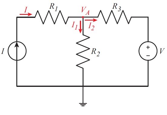 R3 ve R2 dirençleri birbirine paralel R1 direnci ise seri bağlıdır. Eşdeğer direnç 6? olarak hesaplanır. V=IxR formülüne göre V1= 6V olarak hesaplanır.