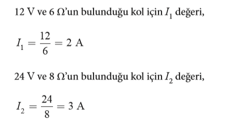 Devredeki bütün dirençlerden geçen akımlar sırasıyla;
