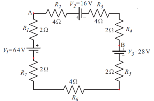 Şekildeki devrede A-B noktaları arasındaki gerilim (VAB) kaç Volt'tur?