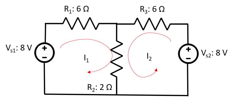 Tüm devreyi dolaştıracak iki çevre akımı tayin edersek, I1 ve I2 akımları aynı yönde ve R2 direnci üzerinden geçen akım olduğunu görüebiliriz. Bizden istenilen değere en kısa yoldan ulaşmak bize zaman kazandıracak aynı zamanda da hata yapma riskimiz azalacaktır.