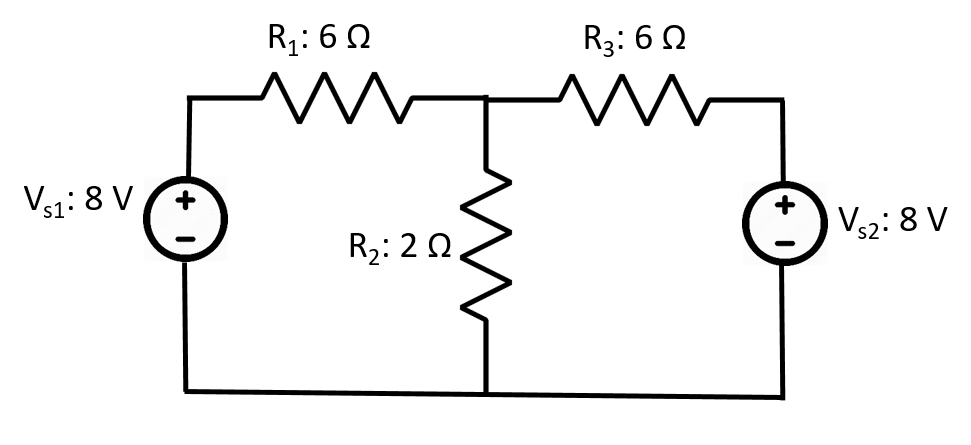 Düğüm noktası gerilimini bulmak için akım denklemi oluşturulsa bile buradan bir sonuç elde edilmesi mümkün değildir. Devrenin üç paralel koldan oluştuğu ve bu kolların birisinde sadece bir gerilim kaynağının olduğu görülmektedir.