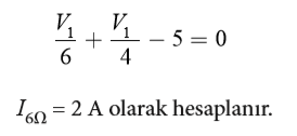 Düğüm noktasının gerilimi, V=5V’dur. I = -(5-30)/10 = 2.5.