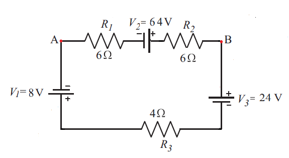 Verilen devrede R1= 6 ?, R2= 2 ?, R3= 4 ?, olduğuna göre düğüm noktasının gerilim kaç Volt ‘tur?