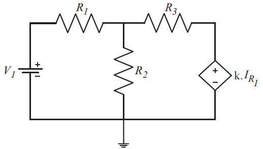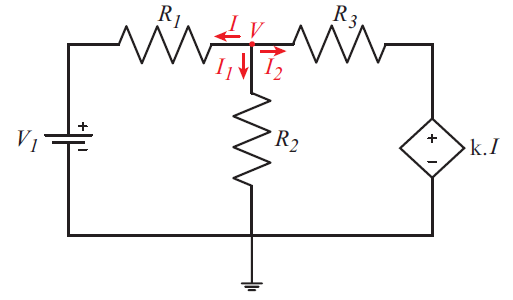 (V - V1 )/ R1 + (V / R2) + (V - k*I ) / R3 = 0