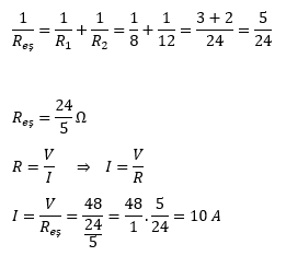 Devrenin eşdeğer direnci paralel bağlı iki direncin tersleri toplanarak bulunur.