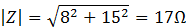 R = 8 ?, X = 15 ?, Z = 8 +j15 ?