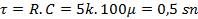 5 k?’luk direnç ile 100µF’lık kondansatörün seri bağlandığı devrenin zaman sabiti ne kadardır?