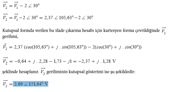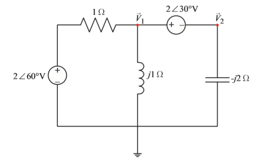 V1 = 3,37 ∠ 105,63° V V2= 3,69 ∠ 151,64° V |