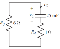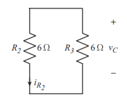Devrenin Thevenin eşdeğeri birbirine paralel bağlı üç dirençten oluşmaktadır. Buna göre RTH=6?, zaman sabiti ?=RTH.C=3sn ve 6sn sonraki vC(6)= vc(0). e-t/?=6. e-6/3= 0,8V bulunur. R2 direncinden akan akım ise i2(6)= vC(6)/R2 formülünden 0,04A veya 40mA olarak elde edilir.
