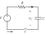 Kondansatör bir DA kaynağına bağlanıp anahtar kapatıldığında, kaynağın pozitif kutbuna bağlanan plakadaki elektronlar kaynağın bu kutbuna doğru hareket eder ve bu plaka pozitif yüklenir. |