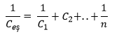 Bir devrede seri bağlanan kondansatörler hangi formül ile eşdeğer sığası ile bulunur.
