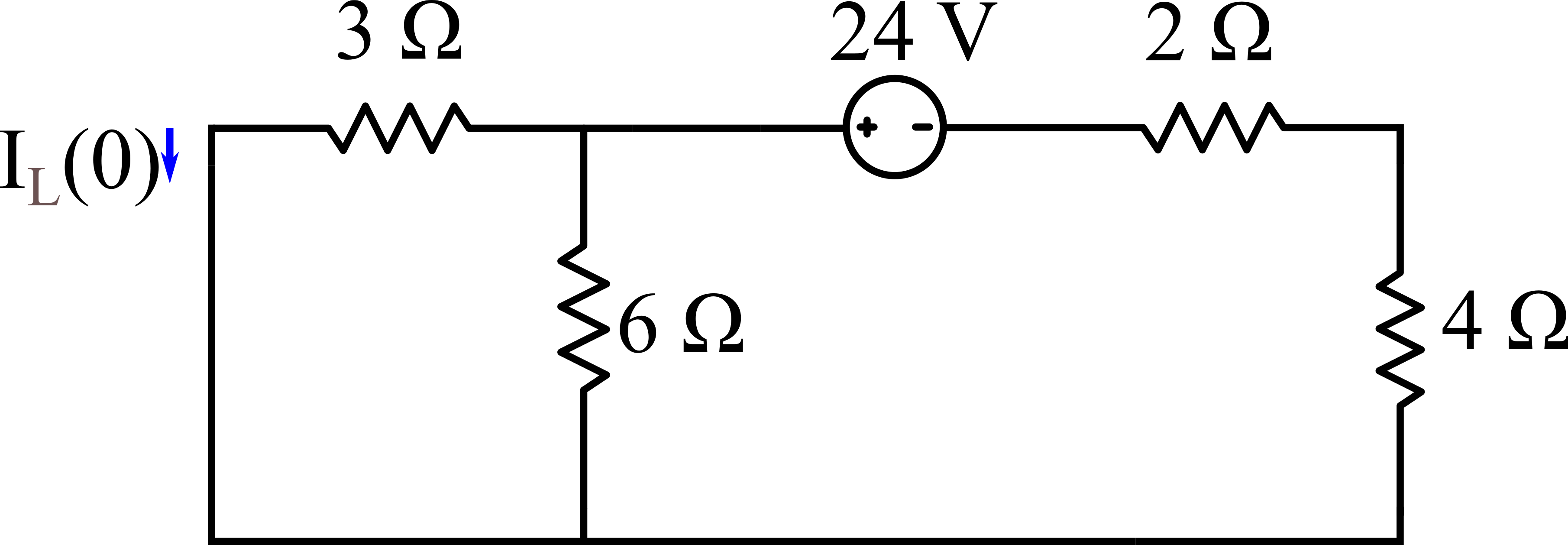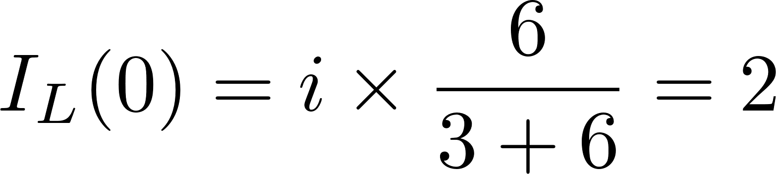 t<0 nında bu devrede yukarıdaki şekildeki durum söz konusu olmaktadır. Bobin kısa devre gibi davranmakta olup 3 ?'luk ve 6 ?'luk dirençler birbirine paralel ve bu dirençlerin eşdeğer direnci 2 ?'luk ve 4 ?'luk dirençlere seri bağlıdır. Buna göre 3 ?'luk direncin üzerinden geçen akım aynı zamanda bobinin üzerinden geçmektedir. Devrede eş değer direnç olmaktadır. Devrede ana koldan geçen akım (2 ?'luk ve 4 ?'luk dirençlerin üstünden)