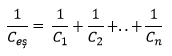 Bir devrede seri bağlanan kondansatörler hangi formül ile eşdeğer sığası ile bulunur.